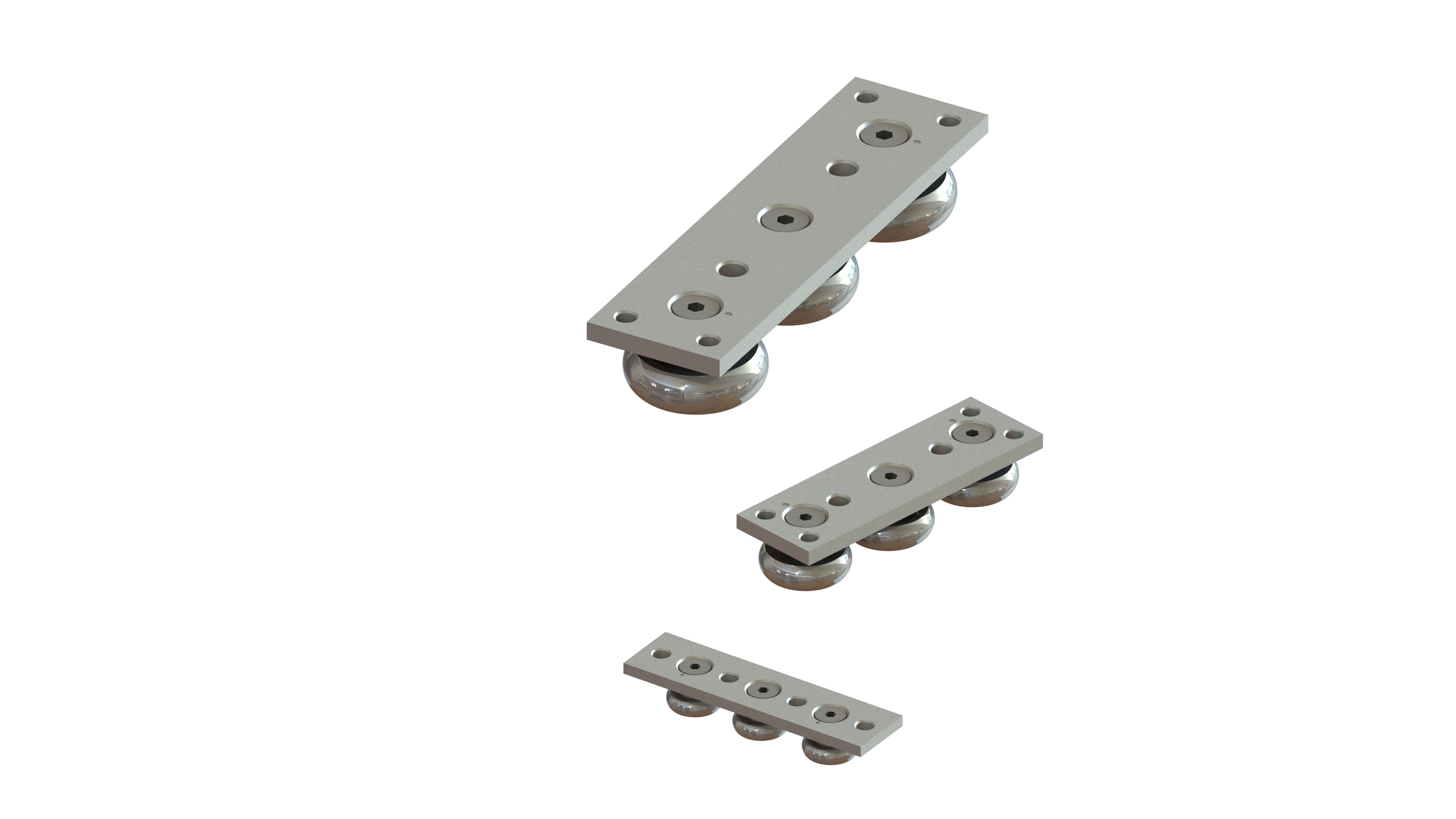具有通用模式的三滚轮滑块安装孔。滑块主体由制成:碳钢或不锈钢。滑块主体上的标记显示位置为同心轮。